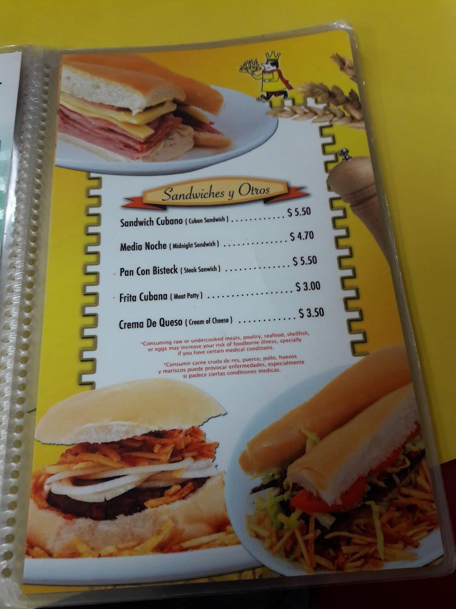 Con jamon, papas julianas, tostadas y cafe con leche. scrambled eggs or sunny side up with ham, julienne fries, toast and milk with Cuban coffee.